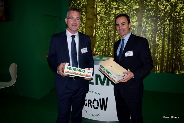 Roberto García y Fernando Trénor, en el stand de Fedemco,Federación Española del Envase de Madera y sus Componentes.