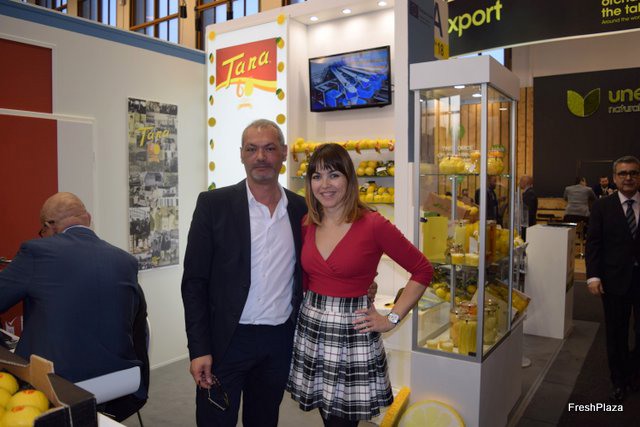 Stand de Tana con Blanca Martínez, especialistas en limones convencionales y ecológicos y fruta procesada.