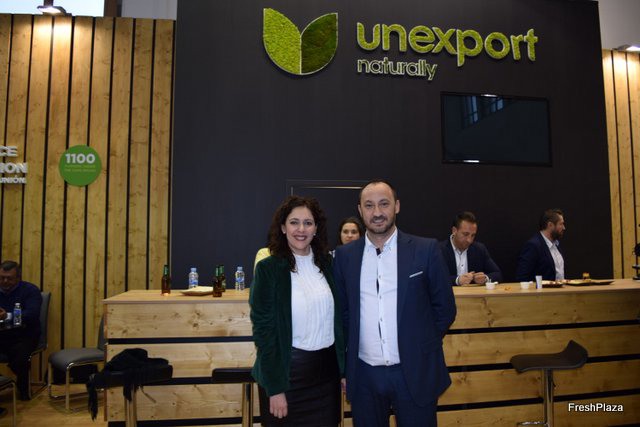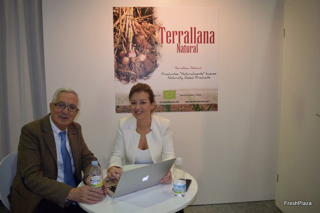 Jesús Pérez y su compañera en el stand de UNEXPORT, apostando por la producción ecológica.