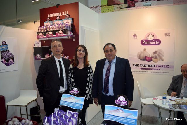 Stand de Coopaman, promocionando su marca para ajos Pedroñete, con igp Ajo Morado de las Pedroñeras.