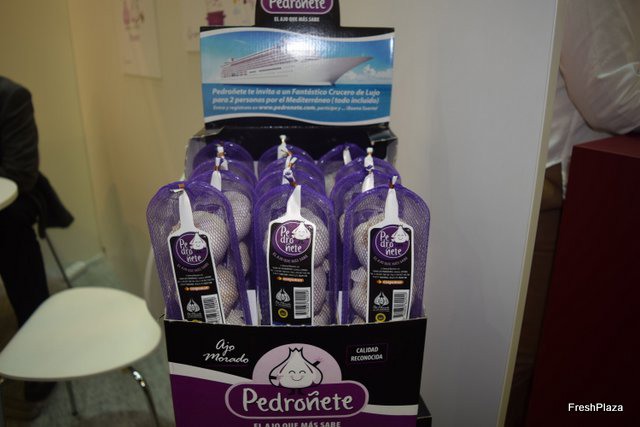 Envases de ajo Pedroñete expuestos en el stand.