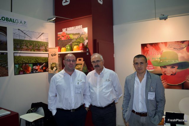 Juan Carlos Ortiz y sus compañeros del Grupo Logistico Tisco, en su primera visita a Fruit Logistica.