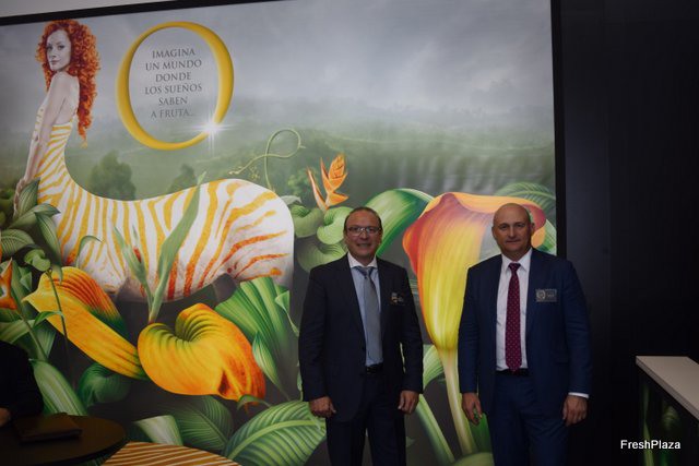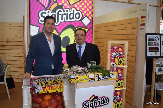 Sigfrido Molina, gerente de Sigfrido Fruits, junto con la visita de Jaime Agulló, gerente de Frutas Jaime Agulló. Sigfrido se ha convertido en la primera empresa del mundo en lanzar una app dedicada al mango y aguacate.