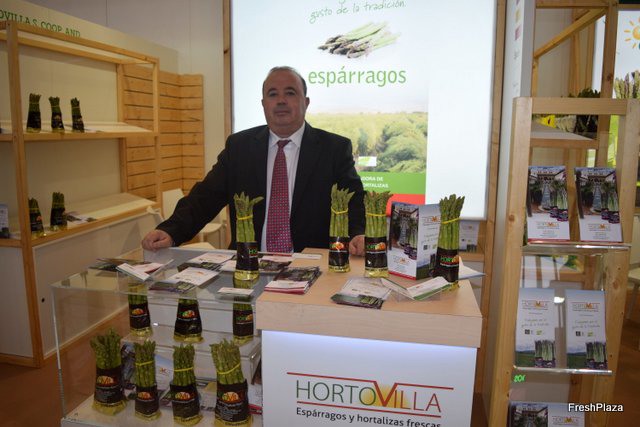 Carlos Ortega González, presidente de Hortovilla, exponiendo los espárragos verdes de Granada.