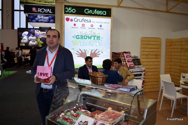 Carlos Cumbreras, gerente de Grufesa, promocionando su nuevo envase para fresas LOVE,un formato para regalar en las ocasiones más especiales.
