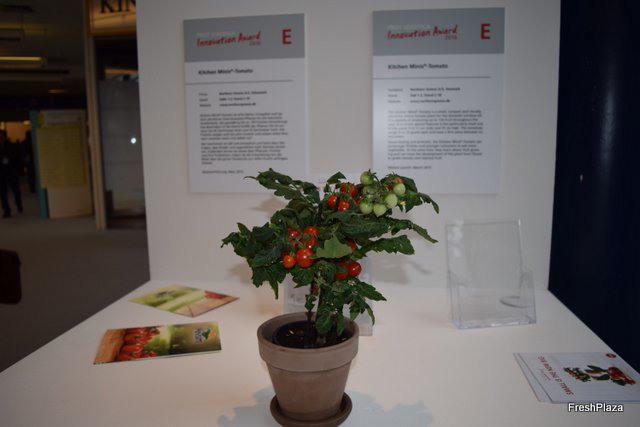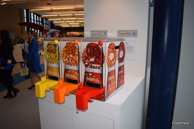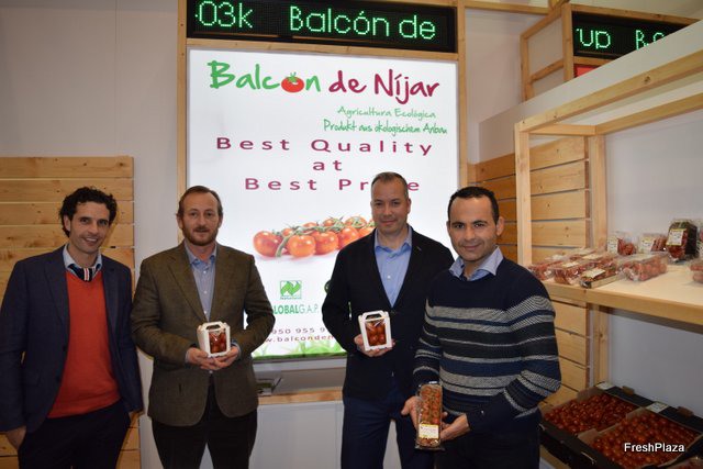 Stand de Balcón de Níjar, presentando un nuevo envase tipo cestita de 500 g para tomate cherry ecológico,