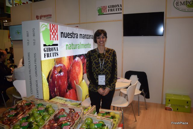Imma Oliveras, en el stand de Girona Fruits, en promoción de la manzana de Girona.