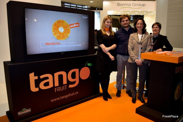 Stand de Tango Fruit, la variedad de mandarina tardía sin semillas que no poliniza.