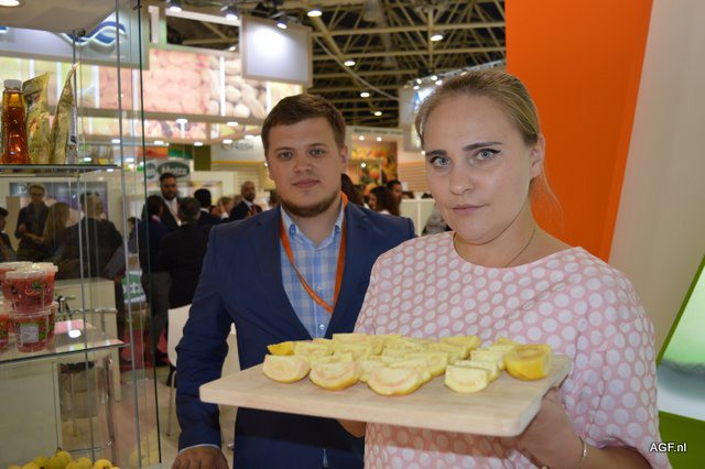 La compañía de fruta de pepita Fresh Time, de Moldavia. Vitaly Obrijany y Alex Baleachin.