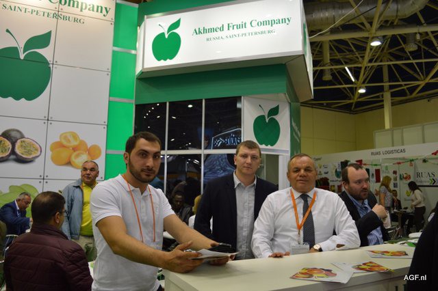 El exportador italiano Salvi. De izquierda a derecha: Ali Zada, de Viva Fruit, San Petersburgo; Liliya Chorna y Marco Salvi.