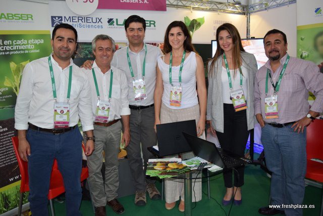 Labser ofrece el servicio de análisis de laboratorio para cumplir con las certificaciones. Sus representantes de izquierda a derecha: Patricio Arenas, Alberto Veloso, Oscar Henriquez, Patricia Villanueva(Agricom), Ivonne Lizana y Guillermo Rioja.