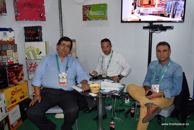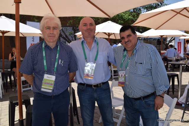 Nick Hale y Colin Gant de JLM Produce junto a Antonio Caballero de la empresa española Frutas Torero.