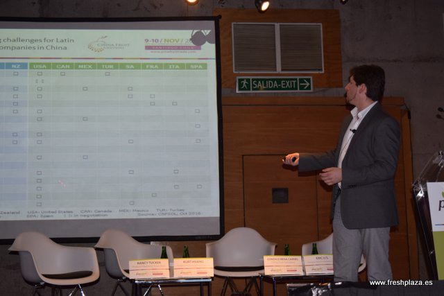 Gonzalo Mena Carriel, Socio director de China Fruit Solutions durante su seminario.