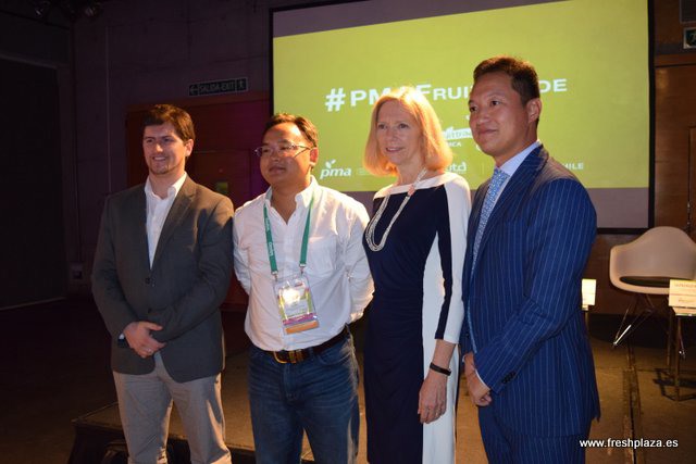 Gonzalo Mena Carriel, Socio director, China Fruit Solutions; Kurt Huang, Gerente general de Shanghai Oheng Import & Export Co. Ltd; Nancy Tucker, Vicepresidenta desarrollo global de negocios del PMA ; y Eric Li, Vicepresidente de suministro y alianzas de Shanghai Yiguo E-Commerce Co., Ltd.