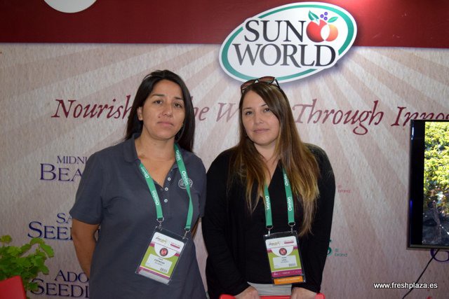 Carol Espinosa y Vania Leal de Sun world, compañía dedicada a crear nuevas variedades de uvas.