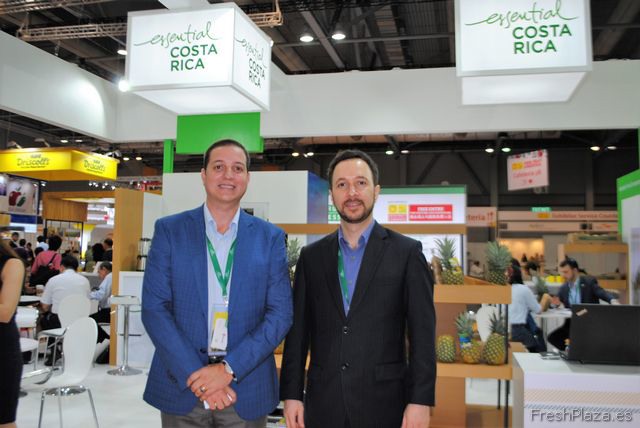 Álvaro Piedra y José Pablo Rodríguez, de Procomer Costa Rica. Este ha sido el primer año que Costa Rica ha estado presente en Asia Fruit Logistica con un pabellón.