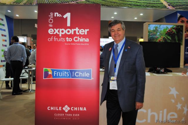 Ronald Bown, presidente de la Asociación de Exportadores de Fruta de Chile (Asoex), muy orgulloso promocionando que Chile es el principal exportador de frutas a China.