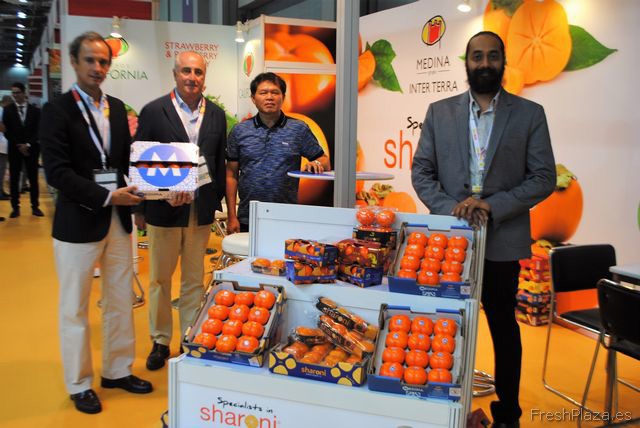 El equipo de Grupo Medina, Inter Terra, promocionando su especialidad, el kaki Sharon.