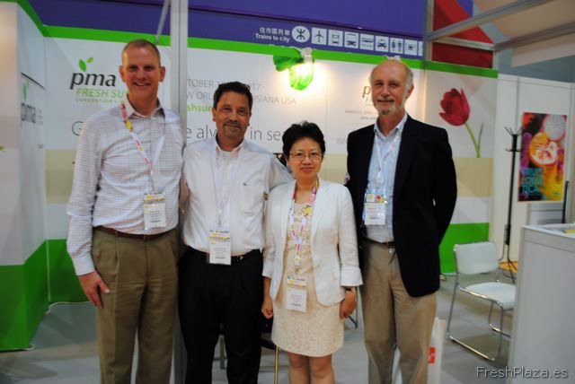 Richard Owen, Anthony Barbieri y Mabel Zhuang, de PMA, junto a Marc Soloman, de Capespan.