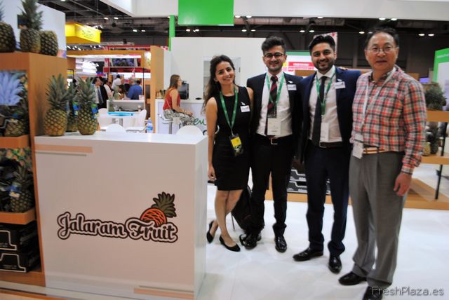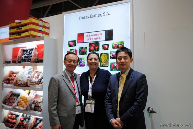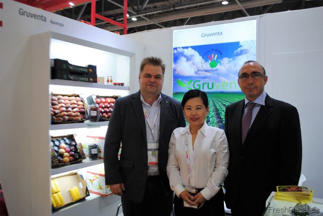 Fermín Sánchez (derecha), con el equipo de Asia de Gruventa, España. En especial para Asia Fruit Logistica, la promoción de sus granadas.