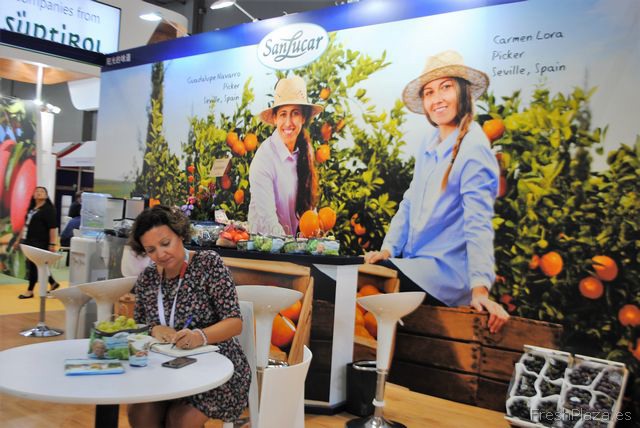 También María Victoria Seleme, directora de de SA Veracruz, Argentina, satisfecha promocionando sus cítricos.