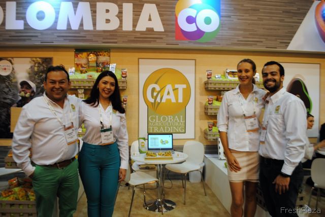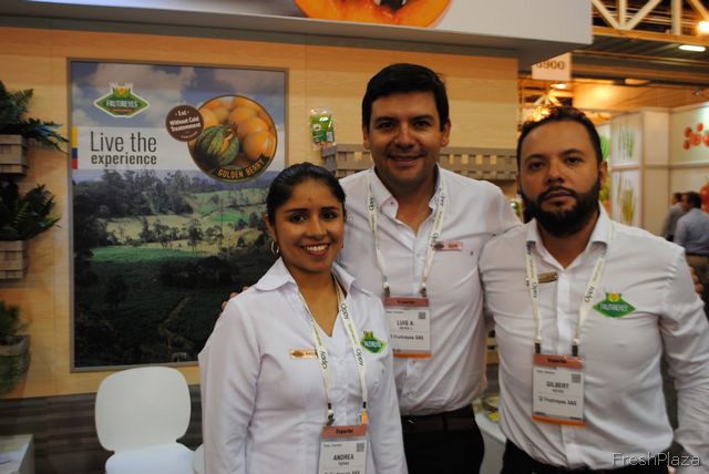 El equipo de Frutireyes, de Colombia, promocionando la physalis.