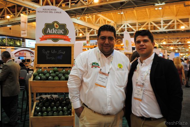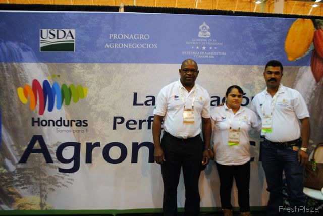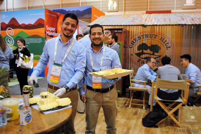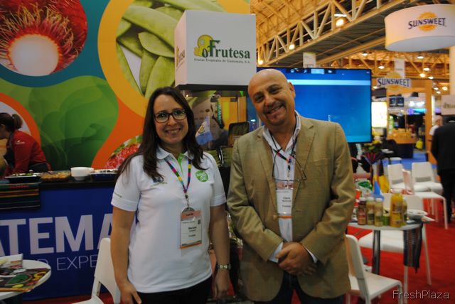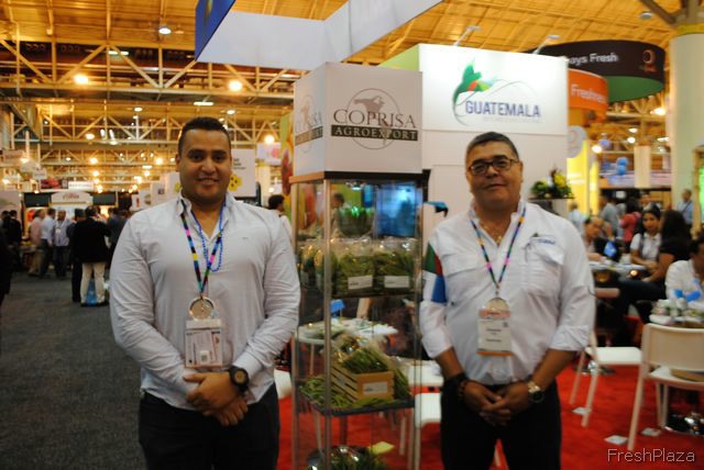 Heberto Reyes, de Globimpex, fundada por dos empresarios hondureños afincados en Canadá, en el puesto guatemalteco, junto con Estuardo Castro, gerente general de Coprisa Agroexport, aunque también es el responsable Agritrade, la feria bienal que se celebra en Guatemala.