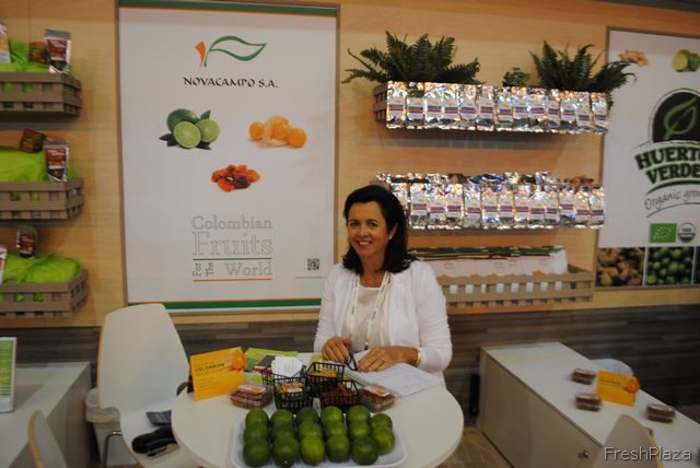 Sandra Riano, de Novacampo, en el pabellón colombiano.