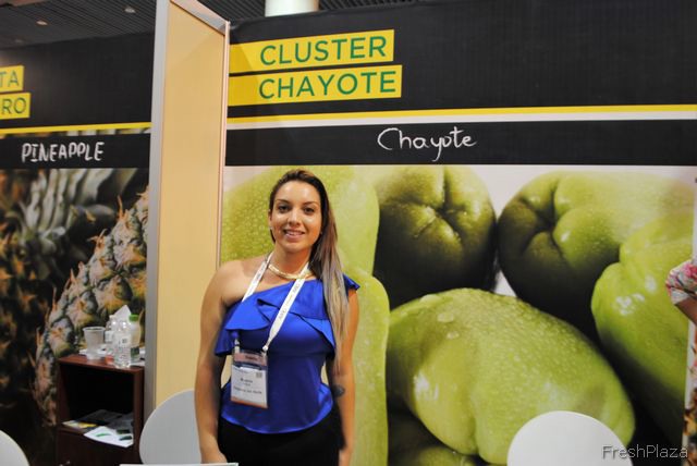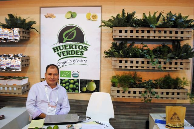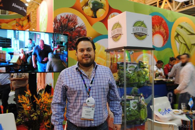Juan Francisco Solórzano, de Agrocumbre, uno de los expositores guatemaltecos en el puesto de Guatemala.