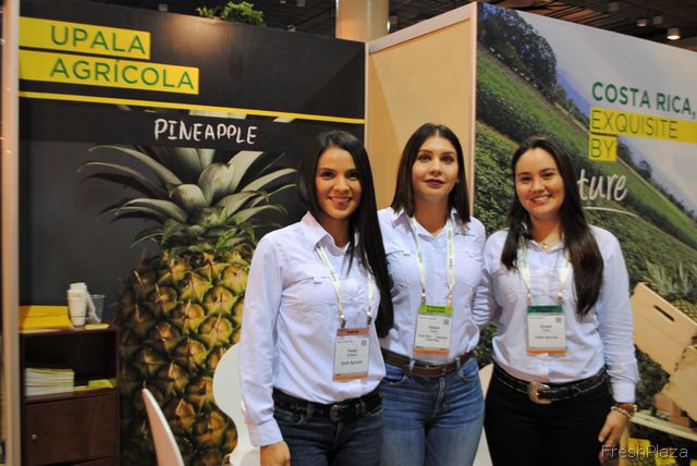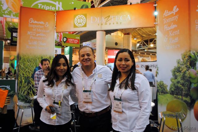 Karol Vidal, Luis Díaz y Viviana Domínguez, de Diazteca Company, productora e importadora de piña mexicana MD2 Golden, con suministro todo el año.