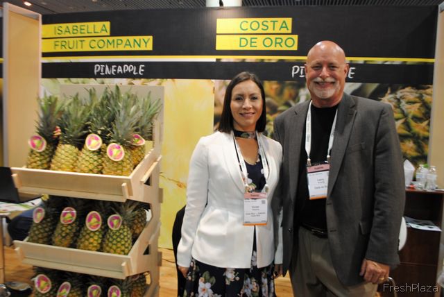 Otro exportador conocido es Frutesa. En la foto están Melissa Valladares Schlesinger y Clark MacDonald.