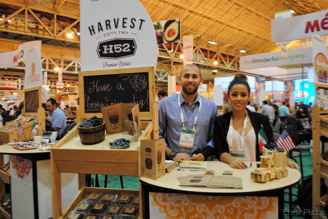 Freddy Hoflack y Berenice Parra, de Harvest 52, una de las muchas empresas que ha tenido que dividir su equipo entre Fruit Attraction en Madrid y PMA en New Orleans. H52 es conocida por sus moras, pero ofrece otras variedades de berries también.