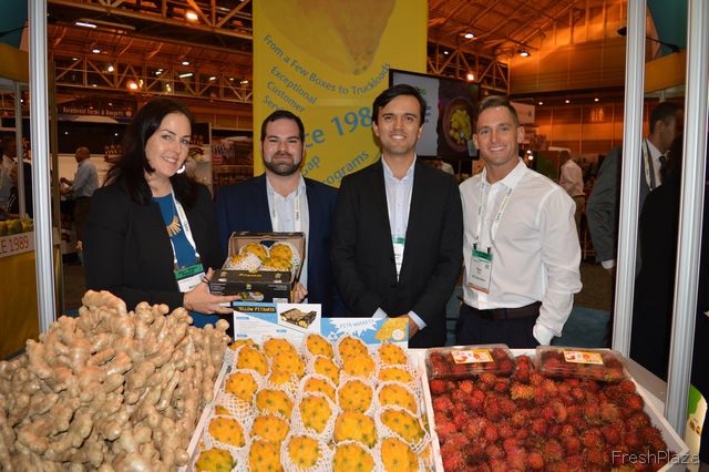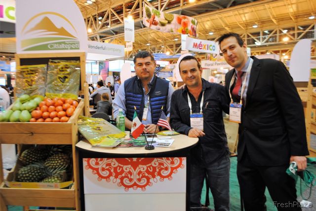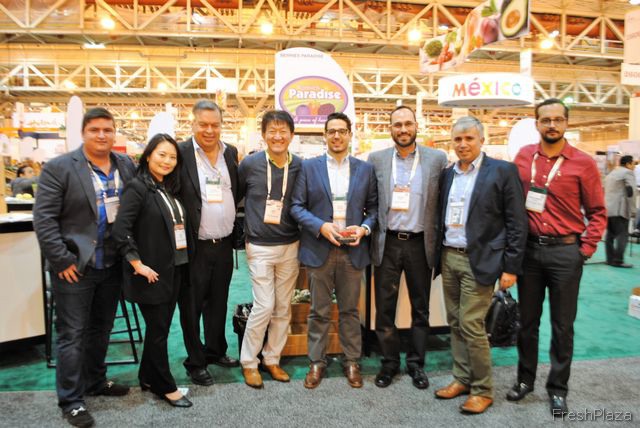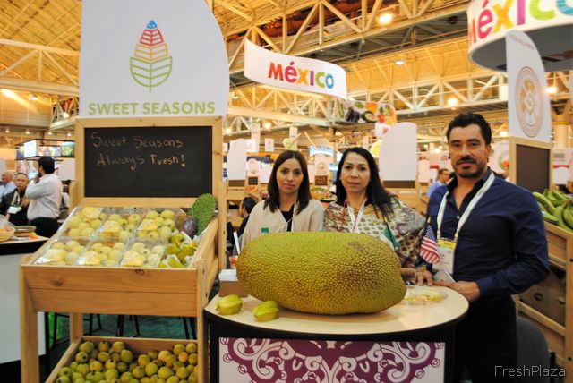 El equipo de Sweet Seasons, uno de los productores mexicanos. Sus frutas especiales atrajeron la atención de los asistentes.