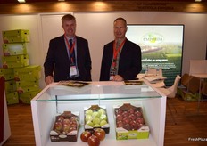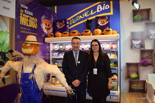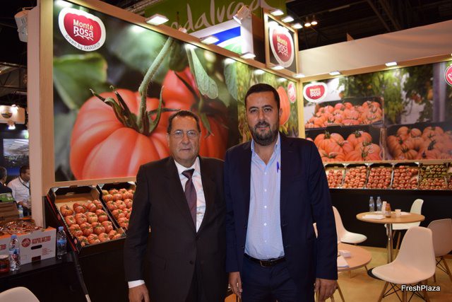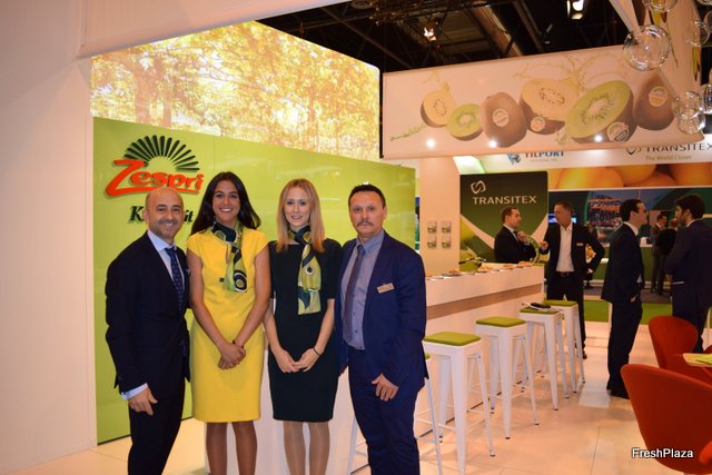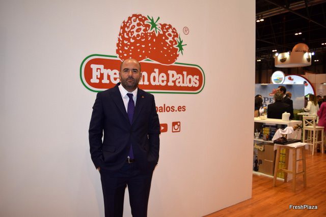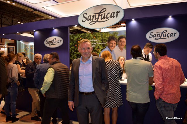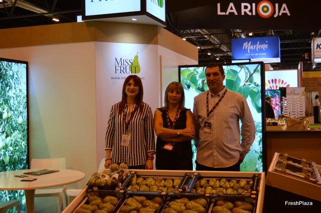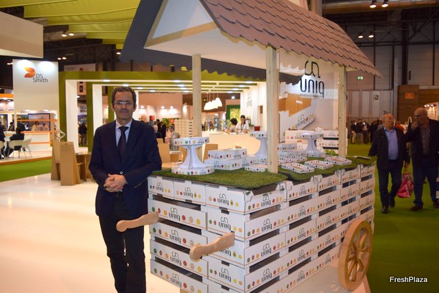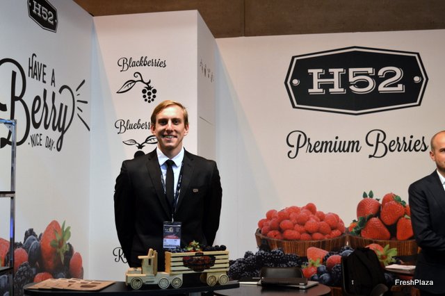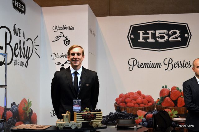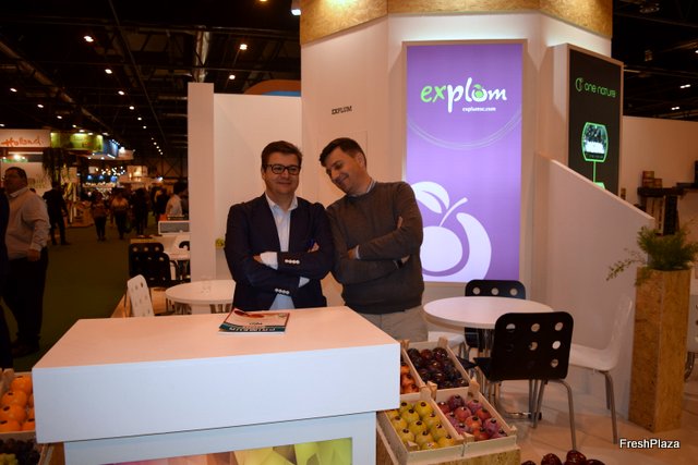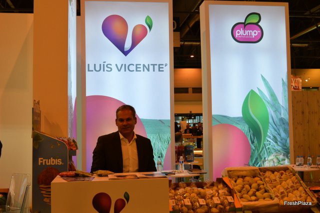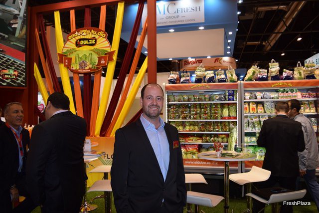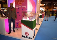 Stand de Exquisite Fruits, con su gerente Daniel Vidal, a la derecha.