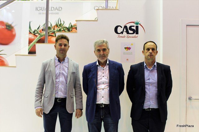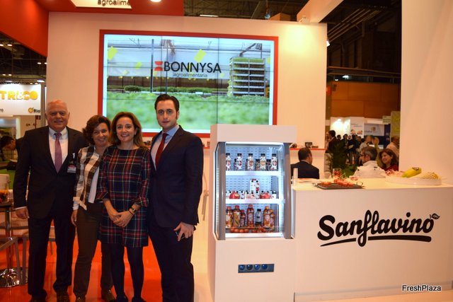 Stand de Bonnysa, especilaistas en tomates cherry, con Teresa Brotons, Jorge Brotons, Carolina Madrona y Marfresd Bayler.