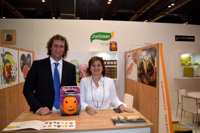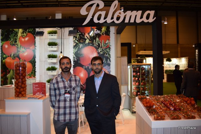 Stand de Paloma, con David Franco (a la derecha), nueva incorporación en el equipo comercial. La empresa murciana está apostando mucho por la granada.