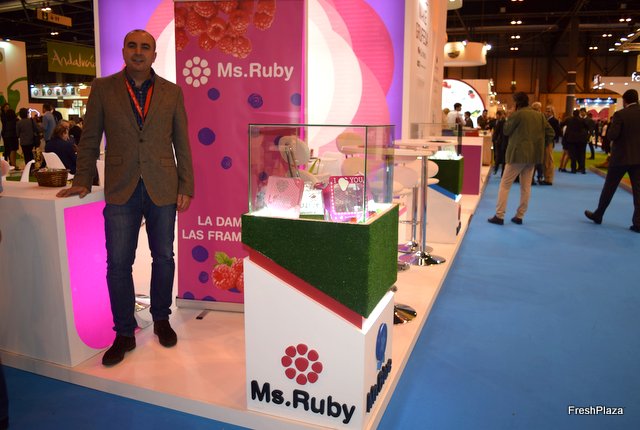 Carlos Cumbreras, gerente de Grufesa, presentando la nueva marca para frambuesa, Ms. Ruby.