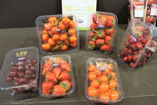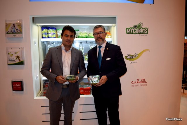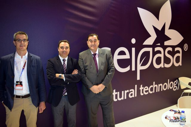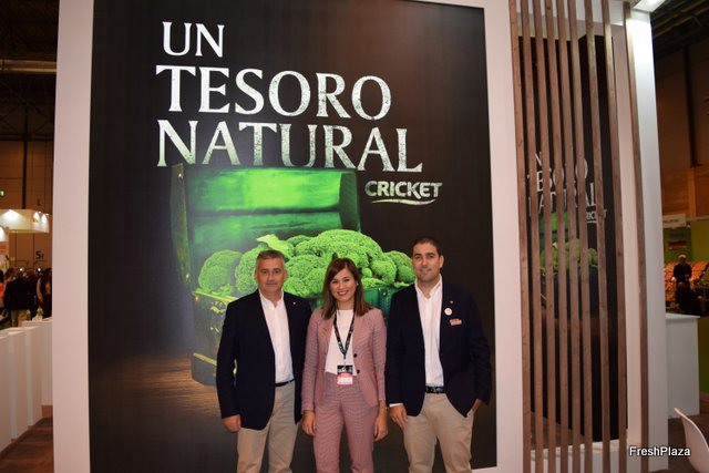 José Miguel Romero, Toñi Piernas y Joaquín González, de Campo de Lorca, presentando una nueva bolsa para Kale. Pronto lanzarán una nueva marca de Brócoli. Representantes de Seipasa