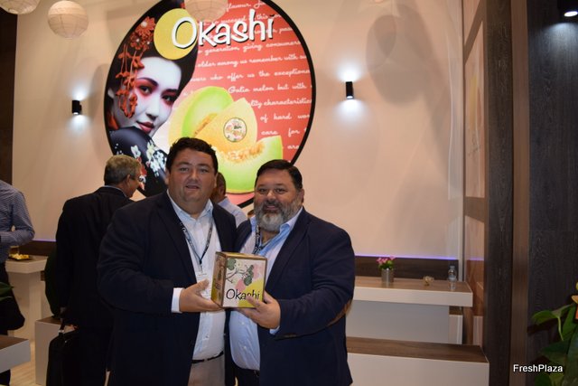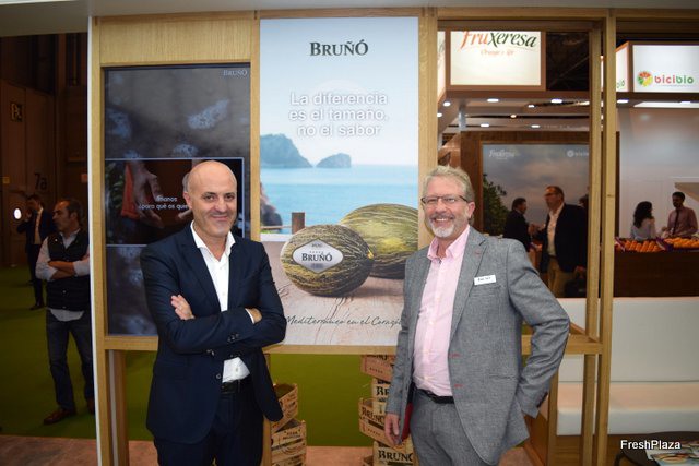 José Bruñó y Javier Bruñó, presentando un melón de pequeño tamaño para pequeñas unidades familiares.