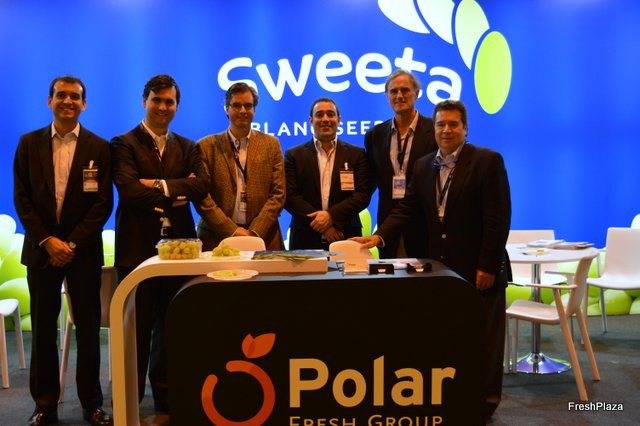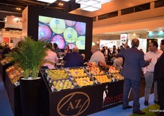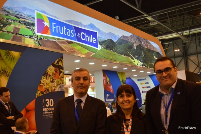 Stand de Asoex, con Charif Christian Carvajal M., director de marketing de la Asociación de Exportadores de Frutas de Chile; Margarita Minchel, Responsable de Proyectos; y Sergio Maureira, Secretario General de la Asociación de Exportadores de Frutas de Chile.