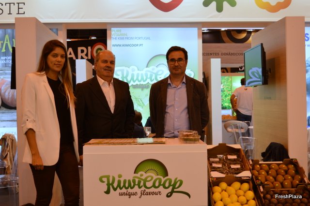 Stand de Kiwicoop, con António Almeida, Carolina Carvalho y Joao Pedro.