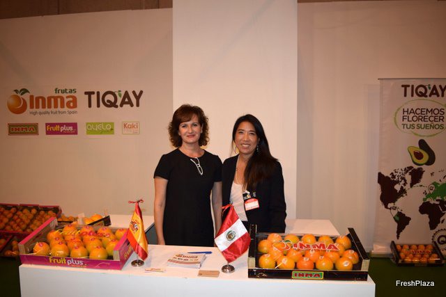 Inmaculada Torregross(a la izquierda)gerente de la empresa valenciana Frutas Inma y Karina Tokashiki, de Tikay, Perú. Gracias a Tikay, Frutas Inma empieza este año su programa anual de suministro de aguacate.