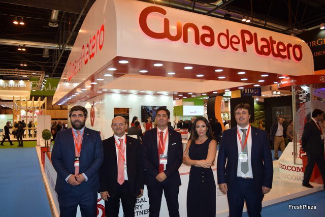 Stand del Grupo Fruvaygo, con Carlos Perez Lema, director comercial, y resto del equipo.