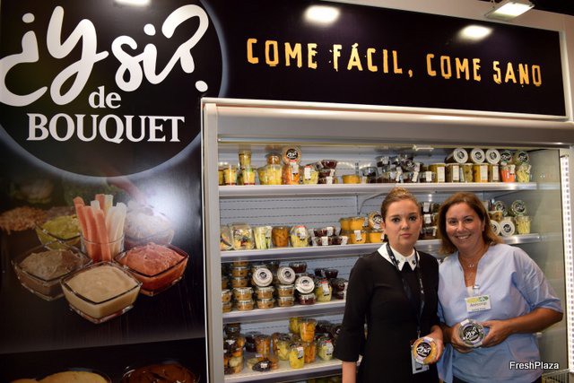 Carlota Pardo, responsable de comunicación de Anecoop (a la izquierda), presentando la nueva marca ¿Y SI? de soluciones de alimentos de conveniencia.