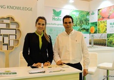 Presidente de Apoexpa, Joaquín Gómez, con representación de Suterra, con Carolina Maset, expertos en soluciones sostenibles para el control de plagas con confusión sexual y trampas atrayentes. Suterra ha sido sponsor de Stone Fruit Attraction 2017