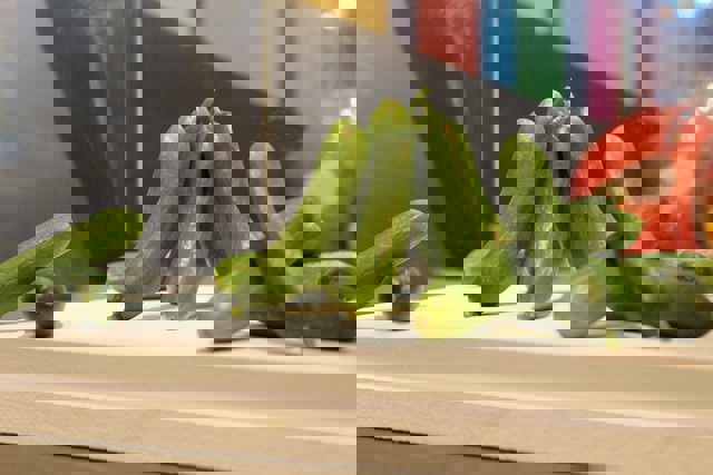 Stand de Montosa, con aguacate y mango expuestos.