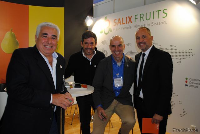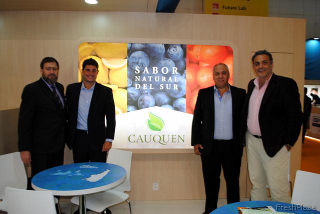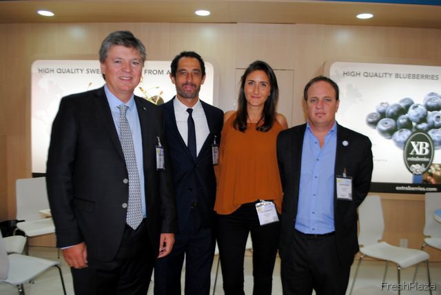 Daniel Calvo, Juan González Pita y Luis Elortondo, de Salixfruits, con Carlos Couturier, de México