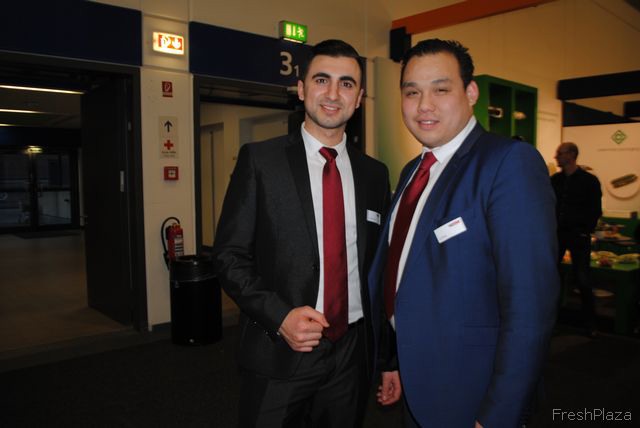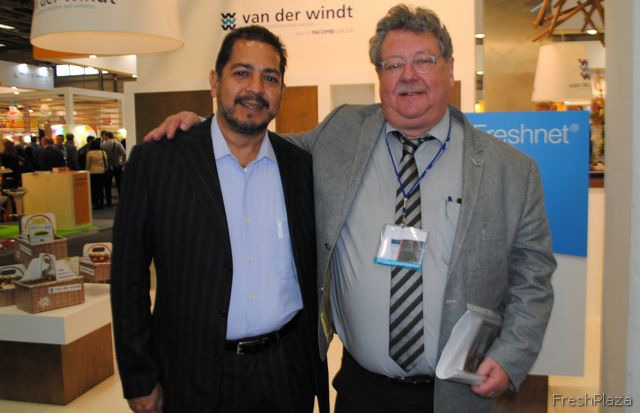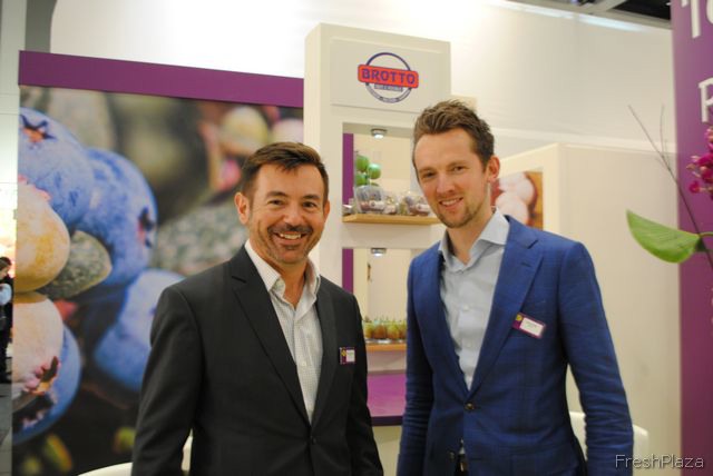 Mauricio Brotto, de Brotto Figs Brazil, con Kees de Rijk, de Nature's Pride. Brotto Figs comparte stand con esta empresa debido al estrecho vínculo que las une.