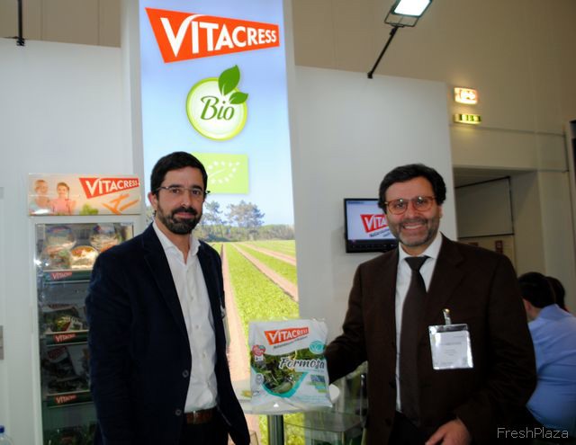 Nuno Crispim y Jose Fradeira, de Vitacress Portugal, presentando su nueva ensalada Formosa.
