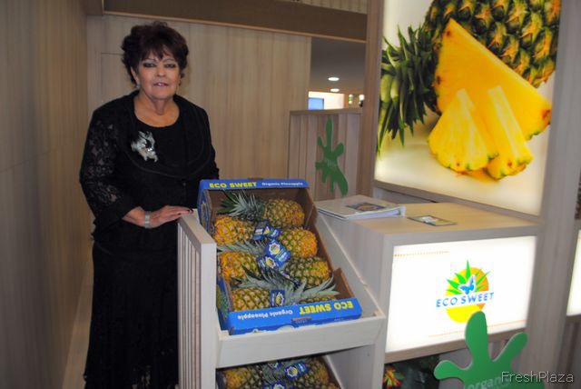 Óscar Peña Gautreaux, de Frudep, República Dominicana, con su marca de piña Bonita.